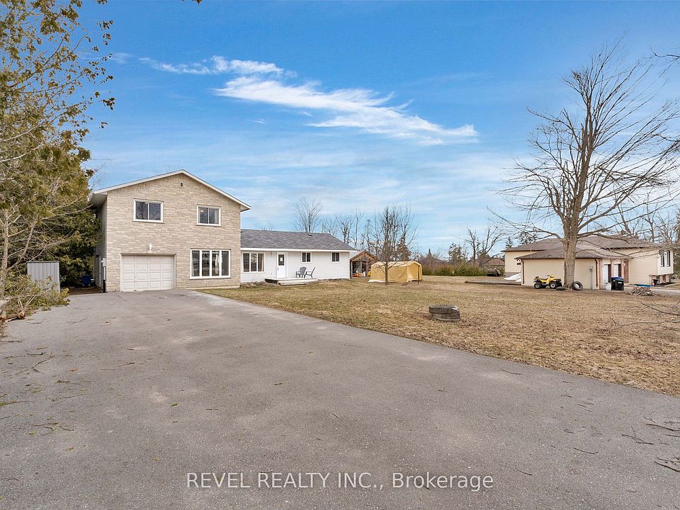Welcome to your new home in the charming community of Hawkestone, just a stone's throw from the scenic shores of Lake Simcoe. This four-bedroom residence showcases a spacious layout on a generous lot, perfect for families or those seeking tranquility. As you step onto the main level, you are greeted by a bright and inviting kitchen, featuring a convenient island complete with breakfast bar seating, ideal for casual meals or entertaining guests. The airy living room showcases a beautiful double-sided wood fireplace, seamlessly connecting to the dining room, making it the perfect space for family gatherings. Enjoy effortless entertaining with direct access to the deck, where outdoor dining and relaxation await. This level also includes two comfortable bedrooms, a thoughtfully designed laundry room with ample storage, and a main 4-piece bathroom, ensuring ease and practicality for everyday living. Ascend to the upper level to discover two additional bedrooms, highlighted by a luxurious bathroom suite with heated floors. The primary bedroom offers double closets and hardwood floors. Outside, the property features a large paved driveway with parking for up to 8 vehicles, complemented by a single-car garage with interior access and two garden sheds for additional storage.