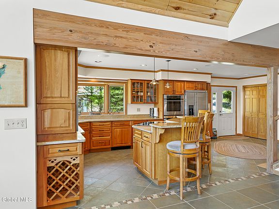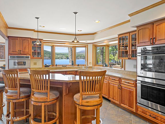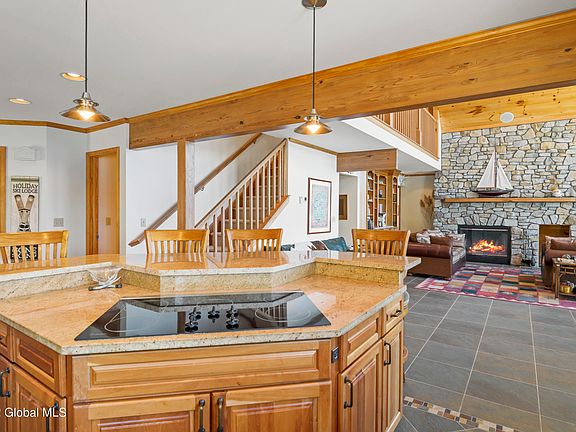 Marvelous 6 bedroom year round home located on the much sought after East Shore of Schroon Lake with 245 ft of Lake frontage. Open great room with cathedral ceiling, fireplace, kitchen, dining area & gorgeous lake views opening on to a