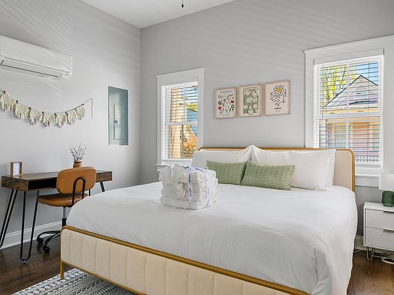 Welcome to The Morning Glory, your exclusive retreat in Downtown Charleston! This charming 2-bedroom, 2-bathroom single-family home is a hidden gem just steps away from the trendiest eateries like Leon's, Little Jack's Tavern, and Melfis. Step inside to discover an inviting open-concept kitchen and living area with soaring vaulted ceilings that exude spaciousness.