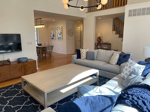 Rental Registration #: 24-696 Spend your time this light-filled, clean and well-appointed 4 bedroom, 3 bath home in East Hampton's Springs, close to the marinas, restaurants and bay beaches. Features include an open living room with high ceilings, eat-in kitchen, a first floor primary suite (currently set up as a large den/TV room with full bath attached), and three bedrooms on the 2nd level that share a large full bath. Exterior amenities include a side deck for dining, outdoor shower, a separately fenced heated pool with patio surrounding and a large yard for plenty of sports and activities. Equipped with all modern amenities, including central air, as well as covered front porch with chair swings. Many time periods available - excellent home for the value.