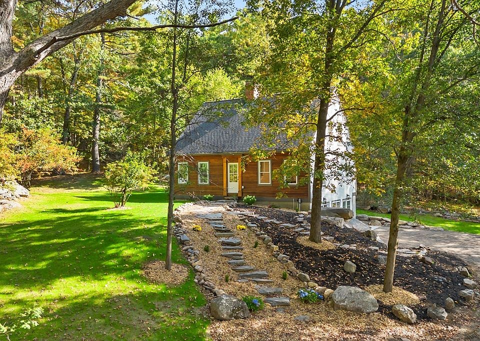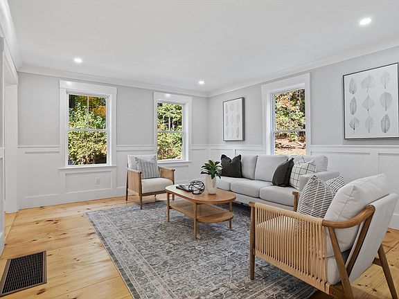 A natural stone approach leads to this exquisitely remodeled Cape privately set on 2.7 serene acres abutting protected land. The stunning white center island kitchen w/ quartz counters, breakfast bar, gas range & sun-filled dining area flows into a spacious dining room & beautifully appointed living room—an open-concept design perfect for entertaining. Unwind in the dreamy primary suite showcasing a spa-worthy bath w/ luxurious tiled shower & double quartz vanity. Two additional bedrooms & gorgeous full bath complete the 2nd floor. The enviable finished walk-out lower level boasts a bath with tile shower, bonus space & a sprawling family room with twin sliders filling the space with natural light. Relax on the screen porch or composite deck overlooking tranquil woodland views. Striking wide plank floors, a convenient mudroom keeping busy lives organized & an oversized 3-car garage add style & functionality. A rare blend of New England charm & modern luxury in a picture-perfect setting.