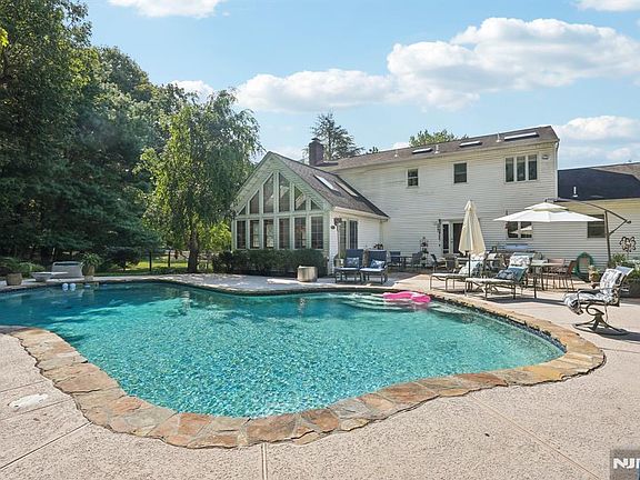 Pack your bags - this beautifully maintained center hall colonial is ready for you! Step into a welcoming foyer that opens to a bright living room and an elegant formal dining room. The modern eat-in kitchen features stainless steel appliances, warm wood cabinetry, and granite countertops - a perfect space to gather for casual meals. The vaulted ceiling Great Room, with its striking brick gas fireplace, is ideal for cozy evenings or entertaining. Upstairs, the spacious primary suite offers a full bath with jacuzzi tub and a walk-in closet. Three additional bedrooms and a full bath complete the second floor. The fully finished basement provides flexible space for recreation, plus a workshop and utility room. Outside, enjoy a large, private yard and a stunning Gunite heated in-ground pool that makes every day feel like a vacation. Additional features include two-zone gas heat and central air, generator connection with transfer switch, a 10 zone sprinkler system, central vacuum, and a two-car garage with oversized driveway. This home is a rare find! Move right in and make it yours. Schedule your showing today!