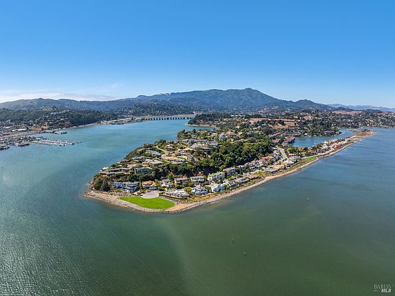 Situated within an exclusive enclave of custom homes, this impressive residence features breathtaking views of the bay, impeccable design, and an idyllic setting. This exceptional residence has been renovated to the highest of standards, showcasing extraordinary quality, craftsmanship, and unsurpassed attention to detail throughout. An elevator connects all levels of the residence, with access points in the garage, the main level, and the upper level. Updated hardwood floors throughout the residence. The living room showcases a series of windows framing views of the bay and French doors opening to the entertainment deck. The light-filled family room features built-in cabinetry, a gas-start fireplace, and access to the deck. The large chef's kitchen features a peninsula with counter seating, a center island, soapstone countertops, a pantry, high-end stainless steel appliances, and an inviting breakfast nook. A main-level ensuite bedroom provides comfort and flexibility. A curved staircase leads to the upper level, which features the comfortable primary suite, an additional ensuite, two bedrooms, a full bath, and a laundry room. Directly across the street, a protected waterfront lot preserves bay views and offers access to the shoreline pathway. Three-car garage and EV charger.