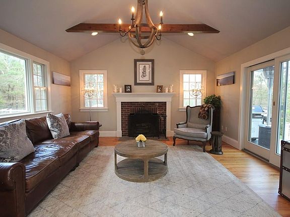 Stylish New England cape, offering 4 bedrooms and a wonderful open floor concept. Located close to scenic Eastover Farm and Leonard's Pond, on a partially wooded 2 acre private parcel with child-friendly fencing and a mini farm area (raised gardening beds and a small animal shelter). *Owners are willing to remove and landscape this space if requested. This home provides hardwood flooring, formal living and dining rooms, a sun-drenched vaulted family room with a wood-burning fireplace and direct access to a backyard deck. The partially finished basement adds additional living space and is not included in the GLA. Rochester offers a fine public school system, conservation trails, kayaking launch and rights to Marion Beach.