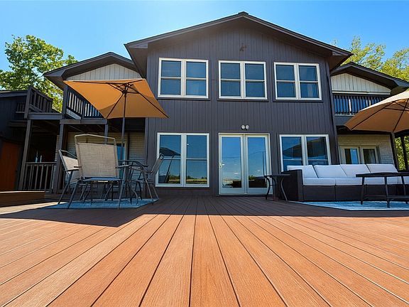 Lakefront living starts here. Set on more than 100 feet of sparkling shoreline, this 3000+ sq ft home has been transformed inside and out to embrace the water. Step onto the expanded back deck, complete with Trex-style boards, new railing, and a hot tub where evenings stretch out over endless lake views. Cast a line from your private fishing dock, launch a kayak at sunrise, or simply take in the reflections from the tongue-and-groove ceiling upstairs that mirrors the calm below.