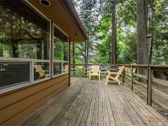 Charming and located on a flat double lot, this quaint starter home is ready for your personal touches! Stunning vaulted ceilings adorn a large-windowed living room that leads out onto a wrap-around deck. The partially fenced backyard is ready for summer BBQs and entertaining. Upgrades include new carpets, stainless steel appliances, and a redone bathroom. A stream trickles gently alongside the house and backyard, a peaceful compliment to this adorable home.