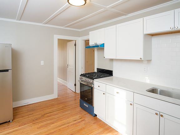 Welcome to this charming two-bedroom apartment on the third floor of 23 Hooker Street, North Adams! This beautifully updated unit features freshly refinished hardwood floors and a bright, modern interior with fresh paint throughout. The kitchen is a standout, boasting brand new quartz countertops and a sleek white tile backsplash, perfect for cooking and entertaining. Enjoy the convenience of off-street parking and in-unit laundry hook-ups. Take in stunning views overlooking the city from your windows, making this the perfect place to call home. Don't miss out on this gem! Pictures of a similar unit. Expect similar finishes and pictures should be updated soon.