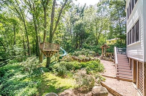 Beautiful Natural Paradise! This classic Colonial home features front and back staircase, updated kitchen, 2nd dishwasher w wet bar, gleaming hardwood floors and Spectacular Scenic Views from inside. Meticulously landscaped, fenced in garden space, barbeque utopia complete with a gas line, grill and a sink!! No need to go anywhere on vacation, you are here. Access to the deck from sunroom and kitchen, makes entertaining easy and fun. Wood burning fireplace keeps things cozy in the winter months. Most windows have been replaced. French drain in the walkout basement. Two heating systems - 1 steam; 1 FHA with AC. Did I mention that there is also a walk up attic? Yes! This is truly a gem and a unique home. Desired neighborhood with easy access to highways.