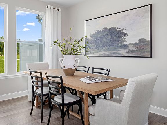 Spacious open concept kitchen with a 9 foot centered island sits adjacent to the airy family room and breakfast room. The second level living includes three bedrooms, two full bathrooms and the laundry room. The roomy primary suite boasts an expansive walk-in closet and bathroom with a dual vanity. Home includes 1 car garage.This specific homesite includes quartz countertops, a tile shower in the primary bath, and LVP flooring throughout.