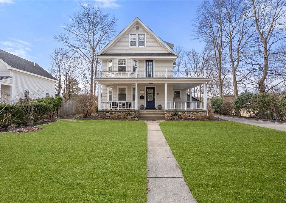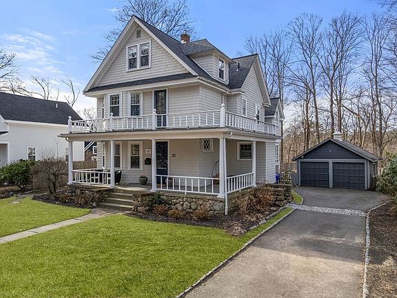 Beautifully renovated Farmhouse Colonial located in the heart of College Heights welcomes you with an inviting wrap around front porch and offers a perfect blend of original architecture and modern design. This spacious home exudes warmth and charm featuring 5 bedrooms and 3.5 baths, providing comfort and style at every turn. Open flexible floor plan, sun splashed rooms and soaring ceilings throughout make this home perfect for entertaining and family function. Spectacular kitchen with dining area flows through to the expansive South facing family room with fireplace and opens to the back deck overlooking the beautifully landscaped backyard with outdoor fireplace. Three bedrooms and 2 updated baths and laundry on the second floor with two additional bedrooms and full bath on the third floor. Features also include new roof installation in 2025 and full house water filtration system. Close proximity to Wellesley center, trains and schools. Easy access to walking trails and Morses Pond.