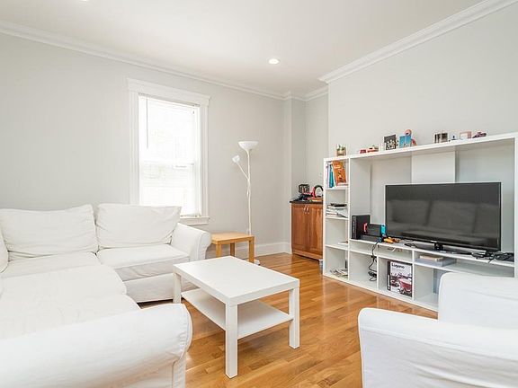 In the heart of Brookline Village and exceptionally close to Coolidge Corner, Pierce School and the Longwood Medical area, this sun-filled condominium is part of a 3-unit association that was created in 2006. It is less than 1/2 mile to the D line and just over 1/2 mile to the C line. Each unit has a private deck, private systems including central air conditioning and an assigned parking space; this unit has been certified as de-leaded. With high ceilings and numerous windows, this bright condo feels even larger than its 1,073 square feet. There are 3 great bedrooms, all with outfitted double door closets and two with bay windows, along with 1.5 baths. A hallway leads to the gorgeous eat-in kitchen with granite counters, high-end stainless appliances and sliders to a private covered deck with steps to the patio and driveway, making it ideal for everyday entry. Open to the kitchen is a beautiful living room with multiple exposures & a dry bar. The basement has private storage & laundry.