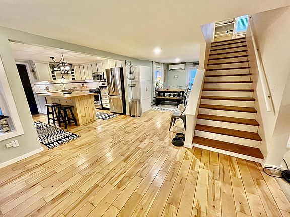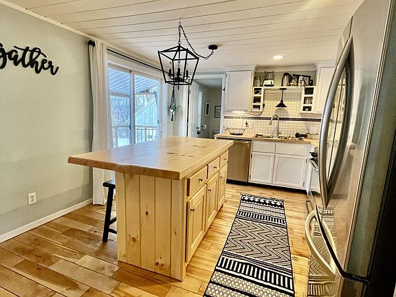 Nestled in a quiet, desirable neighborhood in Bath, this home boasts an open concept kitchen, dining and living area. Custom kitchen island, new butcher block counters, a large screened in porch and 3 efficient heat pumps as well as a newly installed pellet stove. Enjoy a fenced in yard with perennial gardens and 2 car garage on a quiet, dead end street. 3 good sized bedrooms with large windows and a full bath upstairs along with a recently lined TC Hafford basement-this house checks a lot of boxes!