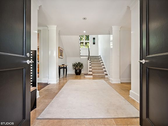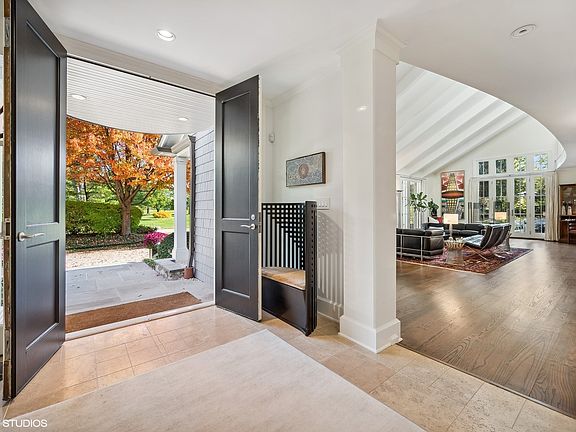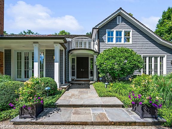 Distinctive, award-winning designer's own home situated on almost 1 acre of lush, exceptionally groomed grounds in an idyllic, picturesque setting. Nestled within breathtaking, expertly manicured gardens, this unmatched take on Cape Cod simplicity, designed in collaboration with Paul Konstant, offers the most discerning buyer a seamless blend of contemporary and traditional with the highest modern standards. Bright, inviting rooms strike a perfect balance between sophistication and comfort. A meticulous attention to detail and proportion, this exceptional home represents the highest grade finishes with no detail undone. A grand, yet simply stated living room is imbued with sunlight through clerestory windows, french doors and skylights, plus a stylized bow-shaped interior balcony above accentuates the 20' height of the living room. Timeless white high-gloss finishes decorate the walls, doors and trims throughout the house while oak hardwood and travertine marble can be found underfoot. The gourmet kitchen features top-of-the-line appliances (Thermador, Sub-Zero, etc.), iceberg quartzite and black marble countertops, beautiful Shaker-inspired storage closets. Skylights and transom windows flawlessly bridge the kitchen and family room further articulating the abundant natural light. Beyond the family room, a spectacular 3-seasons porch with tempered glass panels offers an outstanding place to unwind and enjoy the tranquil setting amongst majestic gardens and views of the golf course. Additional 1st floor living areas include a dining room with hidden wet bar, a handsome office adorned with beautiful wood built-ins, plus office or 5th bedroom with adjacent full bath. A haven of tranquility, the primary suite completes the 1st floor and features a spa-like bathroom with jacuzzi tub, shower, Philip Starck dual vanities, Robern recessed medicine cabinets, heated towel rack plus exceptional walk-in closet. The 2nd floor features 3 additional light-filled en-suite bedrooms plus 2 balconies overlooking the exceptional grounds (one is the scale to be a 2nd floor primary alternative). Outstanding basement with generous exercise room (10' ceilings), 30-case climate-controlled wine room, laundry room, wonderful rec room with slate floors, tool/workroom plus multiple generous storage rooms. Additional features include: formal 1st floor powder room, insulated, attached 2-car garage with drop-down attic storage and outdoor shed. The exceptional grounds and gardens can be enjoyed from the expansive bluestone patio or most rooms on the first floor with abundant windows and doors. Set on one of the most coveted private roads, this tastefully refined home harmoniously balances casual ease with refined elegance creating a sanctuary of warmth, tranquility and an extraordinary place to call home.