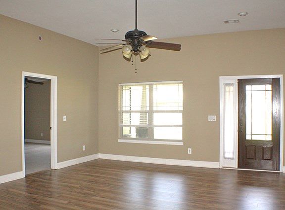 Spacious 2424 sq ft home in Warrior Flats has hardwood floors, open arched doorways, & bonus room with wet bar. Open kitchen has stainless steel appliances, granite counters, breakfast bar island, & dining area. Formal dining room & family room on either side of kitchen. Covered patio perfect for entertaining in almost 1/2 acre yard. Split plan for master BR privacy. Features walk in closet & bath w. jetted tub, separate shower, double vanity. Separate laundry room. Transferable home warranty.