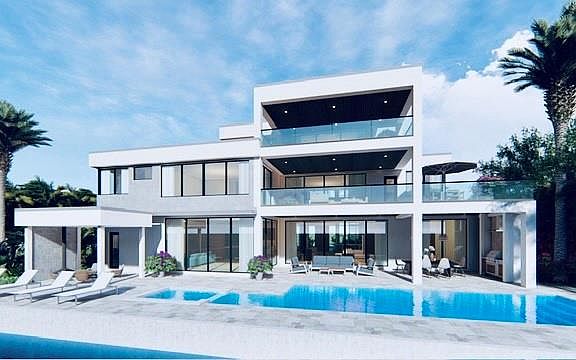 Large poolPrivate beachfrontHome theatre roomModern waterfront masterpieceMega-yacht dockageEntertainment suite