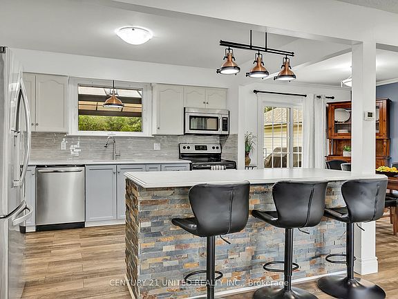 Located in a prime location for commuters in the quiet town of Janetville across from a large park for the kids to play and entertain. On the outside, this property offers over a half acre of land that is level and fairly private with a massive backyard, large deck with gazebo to host large gatherings. A detached 1,000 plus square foot workshop that is heated, insulated with a 100 amp panel, kitchenette/bar, fridge and another great spot to entertain in. On the inside, you have an open concept layout with updated flooring, paint, light fixtures, new front boy window and front door, stone countertops and direct access to the backyard. Newly updated bathroom on the main level, lower level offers ample storage, family room and potential to use as you wish. Other updates include: paved driveway 2019, 50 yr shingle in 2021 and gas hookup on deck, on municipal water and natural gas, Septic 12 years old approx. Come take a look and make this home yours!