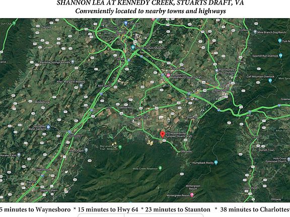 One acre level homesite located in bucolic Shannon Lea at Kennedy Creek. This beautiful community offers an open and nearly flat topography with 360 degree views of the Blue Ridge Mountains. Conveniently located off of Howardsville Tpke and only minutes away from the heart of Stuarts Draft and 15 min away from Waybesboro and Hwy 64. Many of the lots have already been developed with beautiful homes. The vacant lots all could be connected to public water and will require a septic system. Some of the neighborhood amenities include concrete walk/ bike paths, a Club House for your neighborhood or private gatherings and a Pavilion with a stone fireplace and picnic tables. What a great opportunity to build your dream home in an exclusive neighborhood that is privately located in the country and yet only minutes away from several towns and I-64. Discount is available for builders and investors who might be looking to purchase more than one lot. Adjoining to the already developed Phase I of Shannon Lea is also a 43ac land tract that could be developed into 35 1+acre lots. A great opportunity for an investor or a builder to take this neighborhood to the next stage. Owner will negotiate here. Contact listing agent for more information.