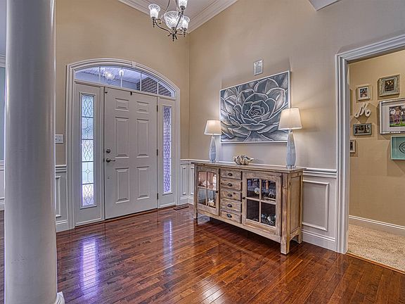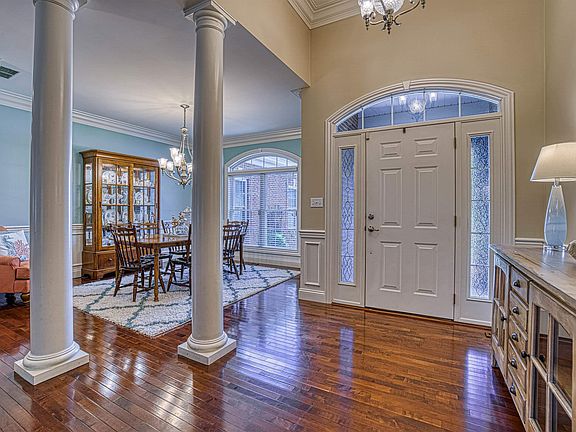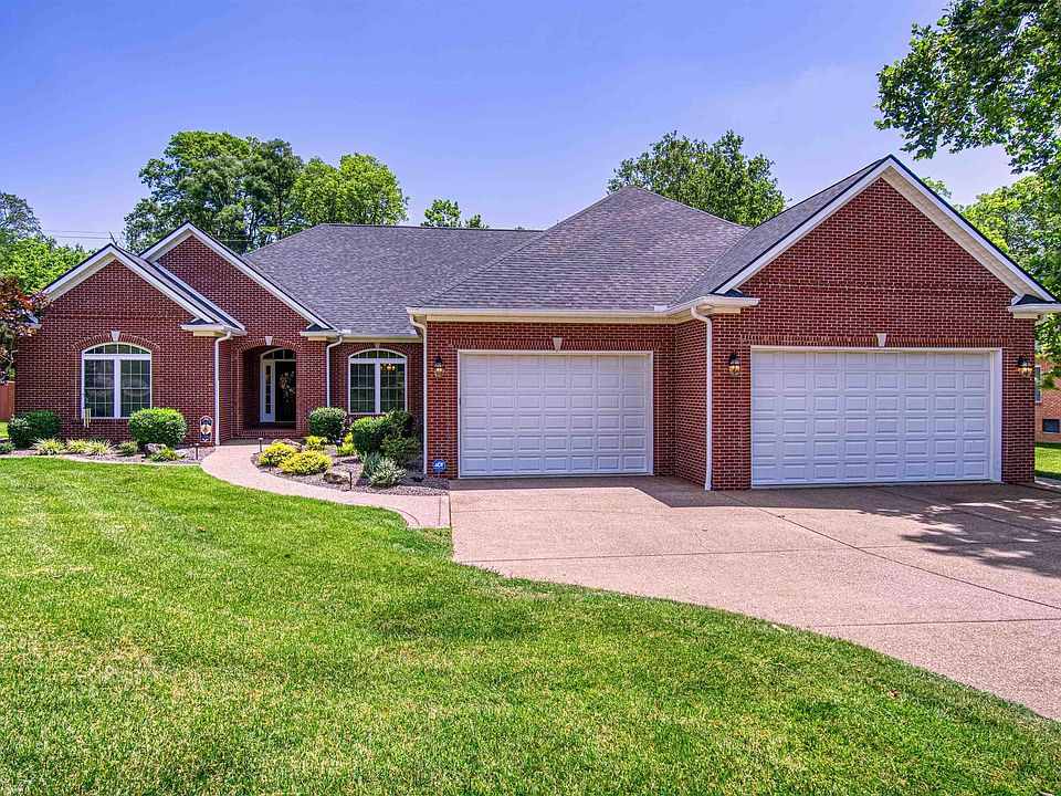 Welcome to this well maintained ranch home offering 4 bedrooms, 3.5 baths, and a 1641 sq. ft. attached garage. Located on a cul-de-sac, the curb appeal of the property is enhanced by its attractive landscaping, creating an inviting atmosphere. Upon entering through the covered porch, the columned foyer welcomes you into the home. Adjacent to the foyer is the formal dining room with crown molding, wainscoting, and arched window. The soaring ceilings in the great room contribute to the open and spacious feel of the home. Overall, the combination of stainless appliances, Amish cherry cabinetry, breakfast bar, and informal dining area makes the kitchen a functional and inviting space for culinary endeavors and enjoying meals. Just off the kitchen is the spacious laundry room featuring a utility sink, cabinetry, built in ironing board, second pantry, and entry from the garage. Down the hall is a powder room with linen closet. The primary suite offers an en-suite with newly updated tiled shower. Completing the main level are three additional bedrooms sharing a full bath. Upstairs, you will find a fabulous bonus room offering over an additional 1,000 square feet of living space and the third full bath. The privacy-fenced backyard is a great place to relax and entertain offering an open patio and landscaping. The attached spacious garage provides plenty of room for up to 6 vehicles, additional storage, and work areas. This garage is a dream for car collectors, hobbyists, woodworking etc.