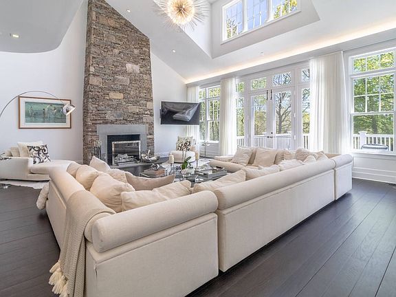 Located south of the highway in a gated community and sited on 3.9 waterfront acres, this 9,200 sqft traditional home offers seven bedrooms, eight full and four half bathrooms, and is central to all thing Hamptons and magnificent ocean beaches. With large entertaining spaces inside and a heated gunite pool and spa, waterfall, and direct waterfront access onto the 25-acre natural spring fed pond, this is a great place to spend the summer.