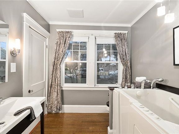 Beautiful, classic, New England colonial located on a wooded dead end, in desirable Edgewood and moments from Historic Pawtuxet Village with the area's best dining, boutiques, cafes, shops, and boat marinas! Set on a picture perfect lot featuring mature plantings, a private master balcony above your rear mahogany porch, overlooking your stone patio, and all within the tranquil setting of your fenced oasis. The magazine worthy interior, adorned with classic custom wood work, and elegant touches warms your home and makes it inviting for any occasion. Hardwood floors, red brick fireplaces, french doors, and crown molding add a charm and splendor you just can't recreate. Convenient first floor laundry, handicap accessible tub and washroom offer opportunity for all families. Your second level boasts a large bath with soak-in, claw foot tub and stand up shower, 3 beds which also include a master bedroom, complete with fireplace, and separate 12x12 wardrobe and sitting area.