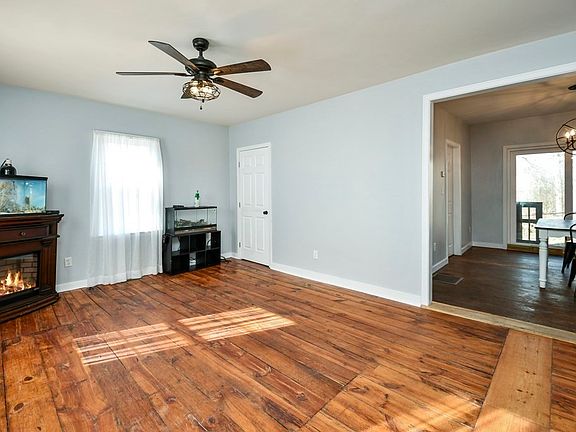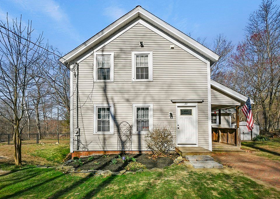 Move in ready adorable Colonial perfectly nestled on just over a ½ acre land offering an abundance of space indoors & out! Upon entering you will love the sun-drenched Living room w/ hardwood floors & closet space! The Dining room has an open concept to the Kitchen, access to back yard through slider & hanging chandelier. Enjoy cooking in the spacious Kitchen offering SS appliances, tile back splash & eat-in area. Full Bath w/ soaking tub & stacking washer & dryer. Upstairs you will find a primary Bedroom featuring hardwood floors, lg closet & en-suite Bath w/ tiled shower! Finishing this floor is 2 additional bedrooms. Your new home has a fenced in yard w/ additional backyard space into the wood line. Covered side porch, storage shed & established gardens waiting to be expanded on. If you are looking for privacy, then this is the one for you! Close to Schools, Parks, Restaurants, River & Pond enjoyment with SO MUCH MORE! Come see all this beautiful home has to offer - Welcome Home!