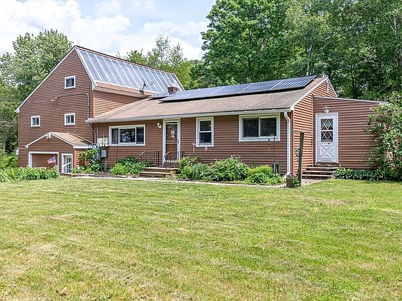 Sweat equity opportunity in Charlton! Perfect for multi-generational living. Nestled on a private 1.1 Acre lot with Pond! Large yard, and a nice deck, ready for a future pool! The main home offers a huge primary bedroom, bathroom and second bedroom. A sun filled spacious living room, dining room and kitchen, the side entrance enclosed porch/mudroom area is conveniently located off the kitchen, includes laundry and pantry area with access to the back yard. The 3 story addition offers a separate entrance, which includes the 1+ tandem garage plus a large workshop area. The stairs lead to the main home as well as the living space above the garage. This space offers a living room/kitchenette, a generous sized bedroom, full bath and stairs that lead to the finished walk up attic space. The separate entry from the main home could make this perfect for extended family. The owned solar panels often generate surplus power, earning money back! Come see what this diamond in rough has to offer!
