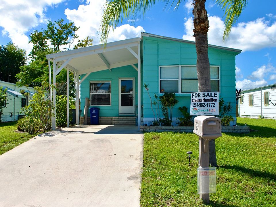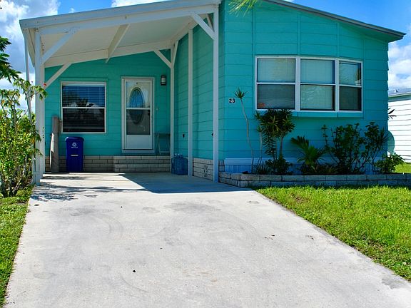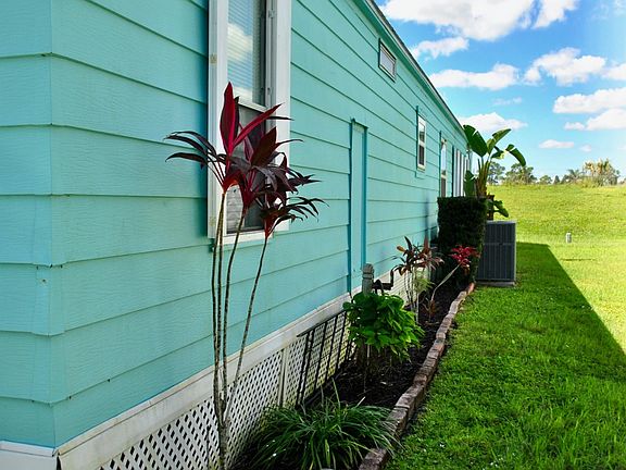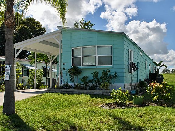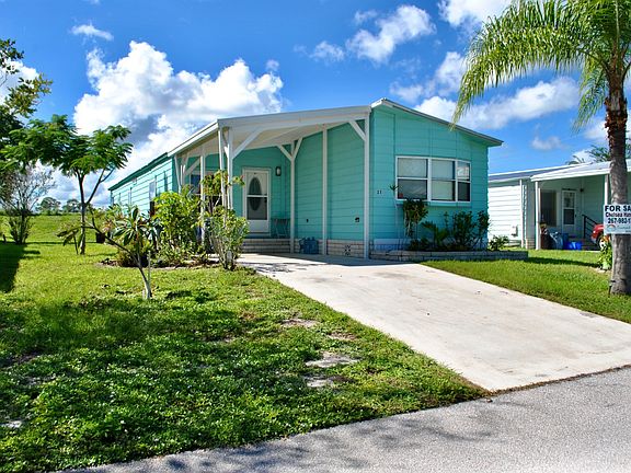 Perimeter lot in Spanish Lakes Country Club 55+ community in Fort Pierce, FL **2 bed, 2 bath split floor plan 1,384 sq.ft.** Lot rent is currently $823 per month and includes the use of the park's gorgeous amenities, lawn, and trash. The community amenities include 2 POOLS, a well-maintained GOLF COURSE, tennis courts, a clubhouse with pool tables, a library, an exercise room, and more! THIS HOME IS IN A PET SECTION!! This captivating residence boasts a split floor plan that sits on a desirable perimeter lot - privacy with no neighbors in the back. Step out on the large private deck in the back to enjoy the beautiful Florida weather. The carport can fit 2 vehicles. Tons of storage**2 living rooms and a dining area**Call today to schedule a showing or make an offer!! Spanish Lakes Country Club is a 55+ retirement community with an income requirement of three times the lot rent. All listing information is deemed reliable but not guaranteed and should be independently verified through personal inspection by appropriate professionals. Our company does not and cannot guarantee or warrant the accuracy of this information or condition of this property. Measurements are approximate. The buyer assumes full responsibility for obtaining all current rates of lot rent, fees, and pass-on costs. Additionally, the buyer is responsible for obtaining all rules, regulations, pet policies, etc., associated with the community, park, or home from the community/park manager. Our company is not responsible for quoting said fees or policies. Financing is available through 3rd party lenders. Please contact the sales agent for additional information.