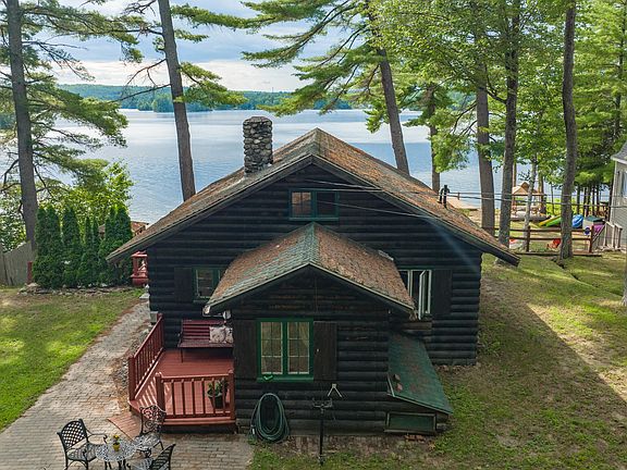 Situated on one of the nicest spots on Little Sebago Lake, this quintessential log style lake home has been enjoyed by the same family since the 1930's. Enjoy the view towards Lyons Point and Bean Island along with amazing sunsets from the deck. The dock and sandy bottom beach area is perfect for all your summer activities. Inside, two bedrooms, a sleeping porch, a beautiful stone fireplace in the living room, eat-in kitchen, and laundry/mudroom area makes living here quite comfortable. A walk out basement could be improved for additional living area as well as the potential for expanding the main house.