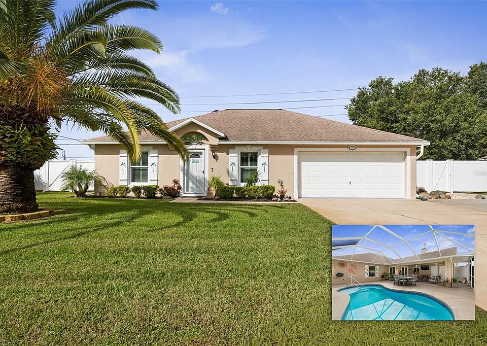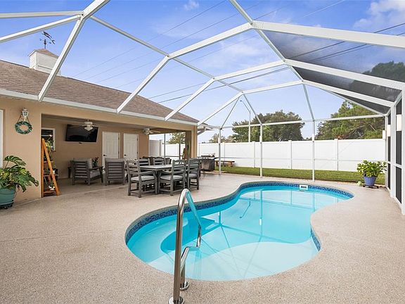 Welcome to your entertainer’s oasis a beautifully maintained 3BR/2.5BA pool home offering 1,859 SF of smart, flexible living. The spacious kitchen features granite counters, stainless appliances, an eat-in nook, and a pass-through to the large living room , perfect for everyday comfort and easy hosting. A true highlight is the game room with custom wood wainscoting, wet bar, pool table (conveys), and mini fridge, complemented by a workshop and she-shed for hobbies, projects, or added storage. The primary en-suite showcases granite and updated finishes, a guest room offers custom oak built-ins, and flooring includes tile in main areas with wood-laminate in bedrooms. Accent lighting in the kitchen, living room, and game room adds warm ambience throughout. Step outside to your screen-enclosed saltwater pool with a private pool bath, expanded lanai, and shark-coated pool deck, a private retreat for year-round relaxing and entertaining. Set in the sought-after L Section / Matanzas Woods, you’re moments from parks, trails, and local conveniences .....ready for the Florida lifestyle! Rare opportunity to own the neighboring lot as well! Notable Seller Updates: Roof (2017) Dual HVAC w/ variable-speed motors (2019–2020) Windows & doors (2020) Water heater (2023) | Thermostat (2024) Screen enclosure (2023) Pool resurface (2023) | Salt system (2023) | Pump (2025) Expanded driveway (2023)