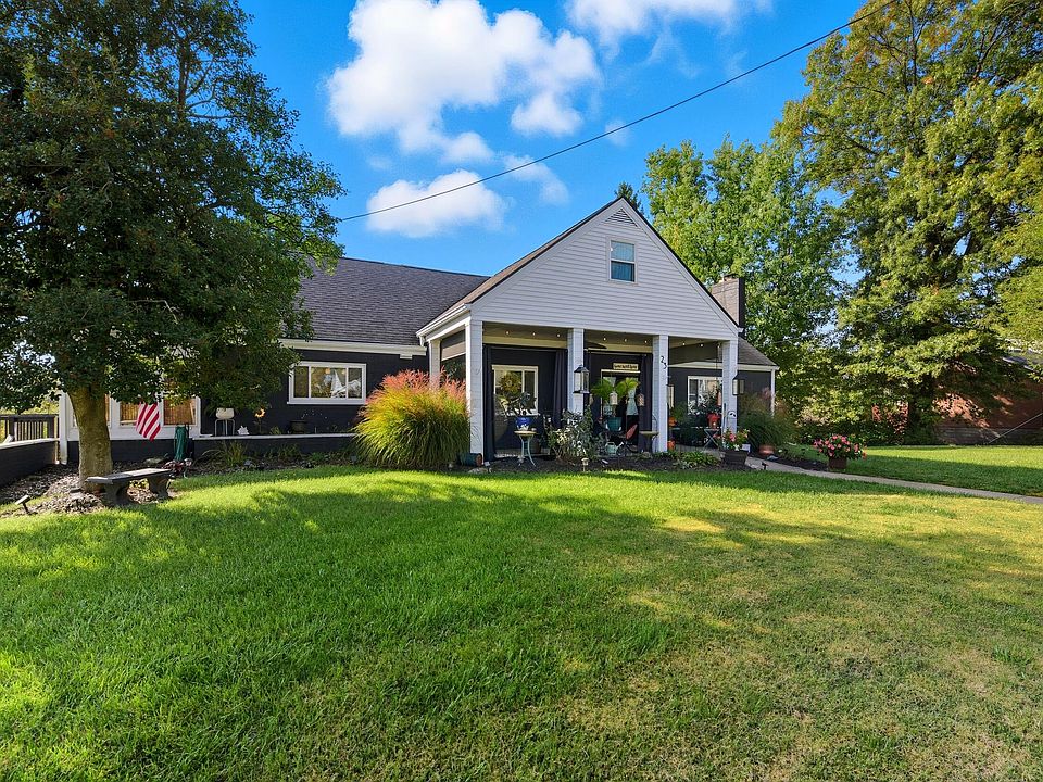 The home boasts a charming exterior with welcoming landscaping, including a spacious yard, well-maintained landscaping, and lush greenery. The covered porch and patio create inviting outdoor spaces to enjoy the scenic landscape.