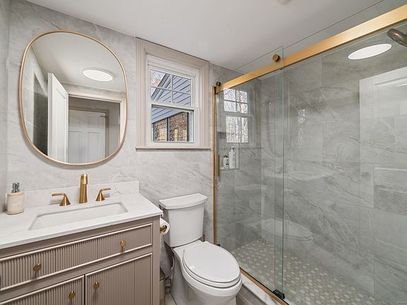 This one-of-a-kind West End brick dormer Cape offers over 2,400 sq ft of beautifully maintained living space, blending timeless charm with modern updates. Nestled on a quiet street yet minutes from schools, shopping, and major highways, this immaculate oversized Cape provides comfort, convenience, and room to grow. Step into a welcoming foyer that opens to refinished hardwood floors and a spacious living room featuring a stunning stone-surround fireplace. The designated dining room-currently used as a first-floor bedroom-adds flexibility to the floor plan. The oversized eat-in kitchen is a true highlight, featuring cherry cabinets, granite countertops, and stainless steel appliances, and it flows seamlessly into a bright three-season room with heat. Convenient first-floor laundry and a semi-private, generously sized backyard complete the main level. Upstairs, you'll find four large bedrooms and two additional full baths, including a beautifully updated 2024 renovation that brings the home to three full baths in total. The finished basement provides even more living space for recreation, a home office, playroom, or gym. Major updates include a new roof, central air, efficient gas heat and solar panels, ensuring year-round comfort and peace of mind. The home also features a two-car garage and strong curb appeal with its classic brick exterior. Spacious, updated, and truly move-in ready-this exceptional West End Cape is a must see. Property card says 2 and 1/2 bath however the half bath was renovated and home is now 3 full bath