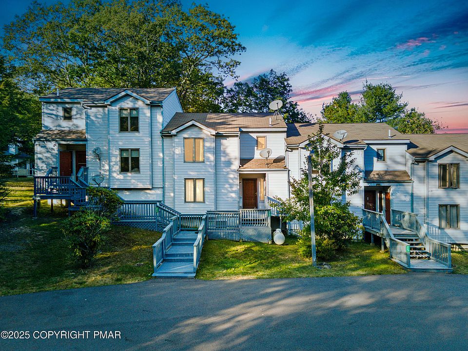 Completely Remodeled Townhome in the Heart of Lake Harmony! Discover this stunning 4-bedroom, 4-bathroom townhome, fully remodeled and offering three floors of living space, including a finished basement with an incredible wet bar designed for entertaining. Perfectly situated in the four-season town of Lake Harmony, this home places you in the middle of all the Pocono action. Across the street, enjoy year-round excitement at Big Boulder Ski Resort, owned by Vail Resorts, with Jack Frost just 5 minutes away. In summer, take a short walk to Big Boulder Lake to soak in breathtaking sunsets or enjoy water recreation. Golfers will love being minutes from two premier courses, Jack Frost National and Split Rock Country Club. The Pocono Raceway, Lake Harmony's boating and jet skiing, and the charming village with its restaurants and nightlife are also just minutes from your door. Inside, every detail has been upgraded: new vinyl plank flooring throughout, a chef's kitchen with soft-close gray cabinetry, quartz countertops, and stainless-steel appliances. The open concept living room boasts a soaring two-story vaulted ceiling and a cozy fireplace, perfect after a day on the slopes. The first-floor bedroom offers easy living convenience, while upstairs you'll find a bright loft with skylight, ideal as a home office or TV lounge, plus two additional bedrooms. The luxurious primary suite features a vaulted ceiling, whirlpool tub, walk-in shower, and a spa-like retreat atmosphere. Downstairs, the entertainer's dream basement includes an expansive wet bar that can seat 18, making it the ultimate spot for game day parties or après-ski gatherings. Whether you're seeking a private year-round retreat, a weekend getaway from New York or Philadelphia, or a fantastic short-term rental investment opportunity, this remodeled Lake Harmony townhome checks all the boxes. Schedule your private tour today and start living the Pocono lifestyle!