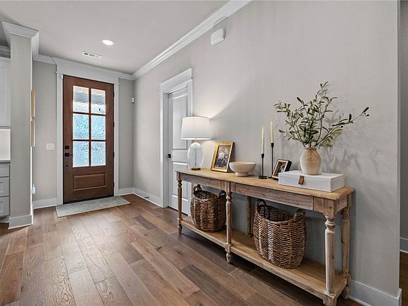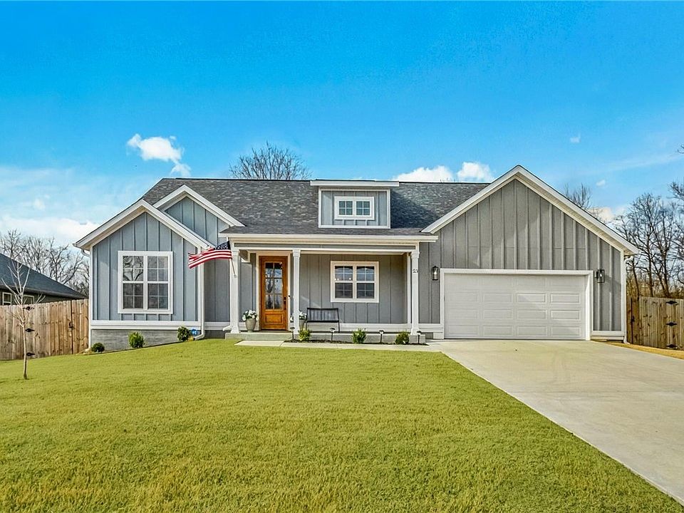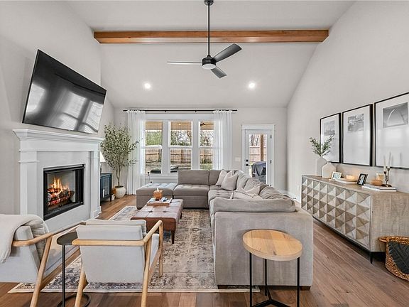 Situated perfectly on a rare FLAT double lot totaling over half an acre, this two year old home feels like a peaceful retreat while still enjoying the convenience of surrounding amenities. Walk through the front door to find a plethora of upgrades. Quartz countertops frame an inviting kitchen with a gas range, walk in pantry and a charming window above the sink overlooking the front porch. Vaulted ceilings lift the open living space anchored by a stunning floor to ceiling gas fireplace, while engineered wood flooring carries through the main areas and the serene primary suite. The spa like bathroom features a soaking tub, walk in shower, his and her vanities and spacious closet. With four bedrooms, 2 bathrooms, a fully fenced yard, a laundry room with its own sink and an abundance of natural light, every corner feels thoughtful and comforting. All just minutes from I49 and a stone's throw from Hole 14 at the Highlands Golf Course, Branchwood Community Center, scenic trails, Lake Loch Lomond and more. Welcome home!!