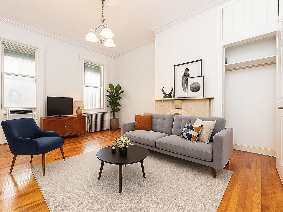 Step into this gorgeous, sun-drenched unit with high ceilings and polished wood floors, offering both charm and character in a prime location. Thoughtfully designed for comfort and convenience, this cozy space is a true gem.