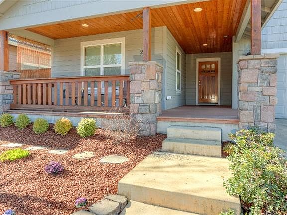 Fabulous home & location! Immaculate single level one owner home w/high quality finishes throughout, built by Suncrest Homes. Stunning curb appeal with the stone posts & large covered porch w/gorgeous tongue & groove wood ceiling. Desirable open floor plan, living w/vaulted ceiling & gas fireplace. Classic hardwood flooring in entrance area, kitchen & dining room. Kitchen boasts slab granite counters w/under mount sink, breakfast bar, stainless appliances with gas cooktop, trash compacter & gorgeous wood cabinetry that has been cared for extremely well. Home has lots of natural light with a skylight in guest bedroom & another in the master bathroom. Large master suite w/extra large walk-in closet. Slab granite counter tops in both bathrooms. Solid wood doors throughout, most lights on dimmers and custom window coverings throughout. Laundry room w/built-in cabinets. Slider to back patio & nicely landscaped, easy care private/fenced backyard. Garage w/great built-in shelves.