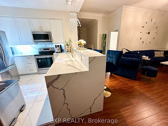 Beautifully Renovated 2+2 Bedroom Condo with 11-ft Ceilings & Exclusive Patio! Discover comfort and style in this spacious over 1,100 sq. ft. condo, featuring 2 bedrooms, 2 versatile dens, and 2 full washrooms. With soaring 11-ft ceilings, laminate floors, and a functional open-concept layout. This home offers modern living in an exceptional North York location. Highlights: Exclusive-use patio. Perfect for outdoor dining, entertaining, or relaxing beautiful dining booth offering a cozy and elegant space for family meals or gatherings Renovated kitchen with a large fridge, modern finishes, and additional cabinets for generous storage space. The den is ideal for use as a home office, study, or guest area. Spacious layout with room to personalize and enjoy. Extras:Includes 1 parking space and 1 locker low all-inclusive maintenance fees (hydro, water, heat & A/C). Exceptional value! Access to 24-hr concierge, gym, indoor pool, sauna, party room, library, entertainment room, and visitor parking. Prime North York Location: Steps from Finch Subway & GO Bus, with easy access to Hwy 401/404. Close to schools, parks, shopping, and dining, offering a perfect balance of convenience and comfort. A rare opportunity to own a beautifully renovated, spacious condo with an exclusive patio, elegant dining booth, and ample storage in one of North York's most desirable communities!