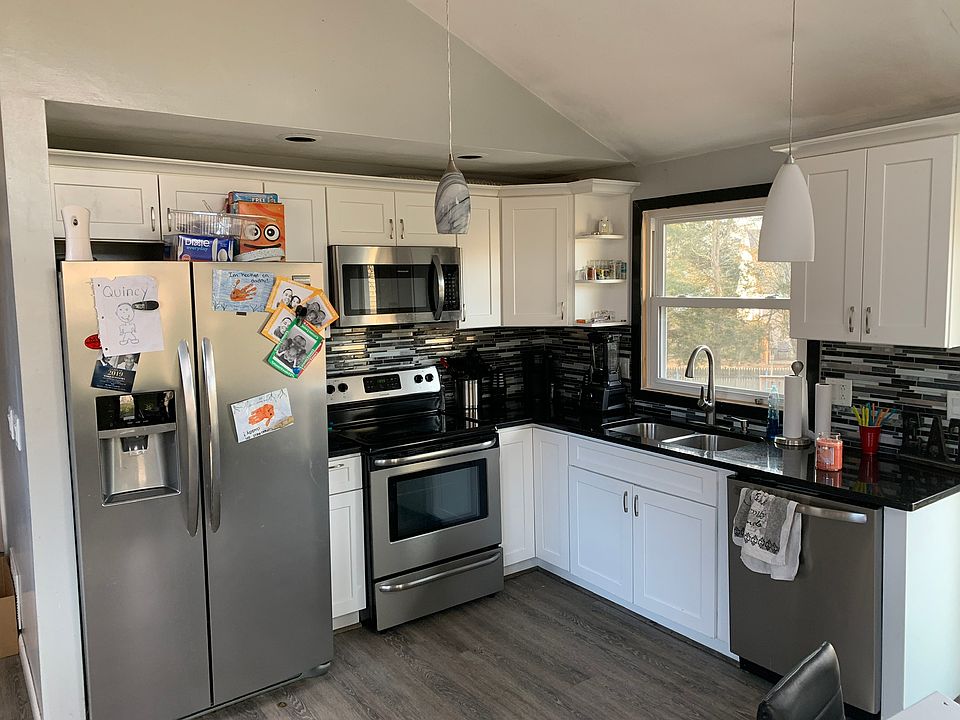 Completed Renovated 3 Bedroom 1 1/2 Bath Contemporary Raised Ranch located at the end of a quiet cul-de-sac in Riverside, Rhode Island. Maintenance free exterior features new architectual shingle roof, solar panels, new vinyl siding, new replacement windows, sprinkler system, & nice green grass all within within the last 2 years. Upon entering this home, you can instantly appreciate the knotty pine cathedral ceilings and skylights! The contemporary style of this home offers great open living space and tons of natural sunlight. Walk up the stairs to the modern white kitchen with soft close cabinetry, granite countertops, mosaic tile backsplash, and stainless steel appliances. Take a minute to admire how the kitchen space overlooks the entrance, dining and living room space below. Both the upper and lower level bathrooms have been renovated with modern vanities, tile, and finishes. Updated flooring throughout the 1,568 of finished living space. On colder nights, sit around the gas fireplace in the cozy living room. Let's not forget about the central air! Slider off the kitchen in the upper level walks out onto a deck, and slider off the living room walks out to the backyard as well. Completely fenced in backyard offers great space for entertaing family, friends, and pets! Secondary deck walks up to to the above ground pool. All the mechanicals have been maintained and are in good condition. Perfect home just waiting for a new homeowner! Taxes do not reflect homestead exemption