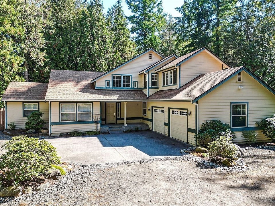 Welcome to 23 Machias Loop in beautiful Port Ludlow! This spacious corner lot is full of charm, surrounded by cedar trees and just minutes from all the community amenities. Inside you’ll find an open living area with vaulted ceilings, a roomy kitchen, and walk-in pantry. The main floor hosts the primary bedroom with spacious ensuite bath plus office, guest 0.5 bath, laundry room, and easy access to the two-car garage. Upstairs offers two additional bedrooms, a full bath, and a bonus room. Outside, enjoy two decks, a fully fenced backyard, a tranquil water feature, and plenty of parking for your gatherings. The established landscaping attracts woodland visitors, making this a peaceful retreat you’ll love coming home to - come make it yours!