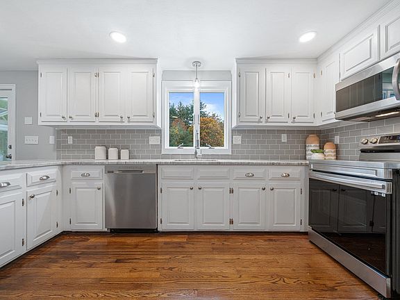 Welcome Home to Presidential Estates! Appropriately named, this welcoming Colonial is majestically sited on 1.8 acres and is thoughtfully laid out. Located in one of Kingston's most sought after neighborhoods, this 3,000+sf beautifully appointed 3 bedroom home offers a lovely wood burning fireplaced living room, formal dining room, gourmet kitchen featuring new Samsung stainless steel appliances and quartz countertops, a stunning family room and a cheerful all-glass sunroom overlooking an idyllic back yard. The gorgeous primary suite affords comfort and privacy alike and the other two generous bedrooms and family bath complete the second floor. The spacious unspoiled attic would make an excellent bonus room if finished as would the sheet-rocked and ready-to-finish basement. Freshly painted inside and out, boasting stylish bathrooms, refinished hardwood floors, new carpets, new heating system and hot water tank, new garage doors, new septic tank and efficient Tesla solar panels. This beauty is a "Must See"!!! Seller is a NH real estate broker.