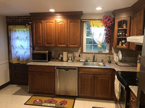 Enjoy the Suburban Lifestyle in Fox Hill, one of Burlington's most popular established neighborhoods. This nicely maintained brick front split level is sited on a half acre level lot on a quiet side street. This home features 3 bedrooms, hardwood floors throughout the main level with tile in the kitchen and marble flooring in the bathrooms. The kitchen has been updated with granite countertops and stainless steel appliances. The family room features a large bay window bringing in lots of light and a wood burning fireplace. The dining room has a slider leading out to the rear deck and patio area overlooking the very private and level backyard great for summer entertaining. The lower level features a spacious family room with a second fireplace. New mini split system for air conditioning, windows, roof and heating system all 10 years old or less, 200 amp electric, gas heat, town water and sewer, 2-car garage.