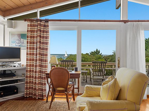 Enjoy dynamic, panoramic views from this charming and thoughtfully updated single-story Chappaquiddick cottage. Designed for effortless living, the home features an expansive deck overlooking the outer harbor and iconic lighthouse, perfect for entertaining or relaxation. A rooftop observation area provides additional seating and even more breathtaking vistas. Deeded beach access is conveniently located just across the way, offering a tranquil spot to enjoy the sandy shore and calm waters of the outer harbor. Ideally situated just off the Chappy Ferry, Manaca Hill offers the best of both worlds: easy access to the shops, dining, and vibrant charm of Downtown Edgartown, while embracing the laid-back, coastal lifestyle that makes Chappaquiddick so special.