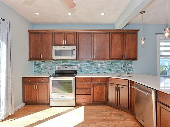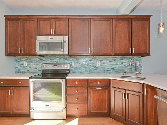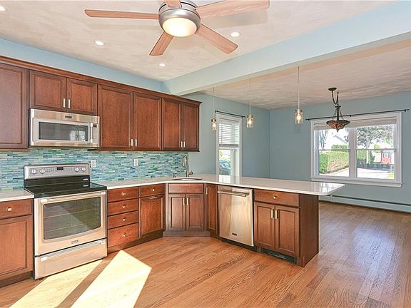Welcome to 23 Meadow Avenue located in Cumberland, RI. This property sits on a low traffic dead end street right off Rt. 114 and minutes to Rt. 295 making it a very desirable location. Step into large entryway which features a front to back family room & large updated kitchen with hardwood floors, recess lighting, stainless steel appliances, lots of cabinetry, huge island peninsula & room for dining room table. Slider off kitchen to slate patio with built in firepit, sliding barn door for added privacy, fully fenced in yard & large storage shed. Full bath completes the main living area. 2nd floor features 4 bedrooms with unique layout offering much potential & possibility. Main bedroom has private full bath. Recent updates include vinyl siding, newer windows, whole house multi zone mini-split system for additional heat source & central air. Town water/sewer & again, excellent location near schools, shopping, highways! Refrigerator, washer & dryer to remain as gifts from seller.