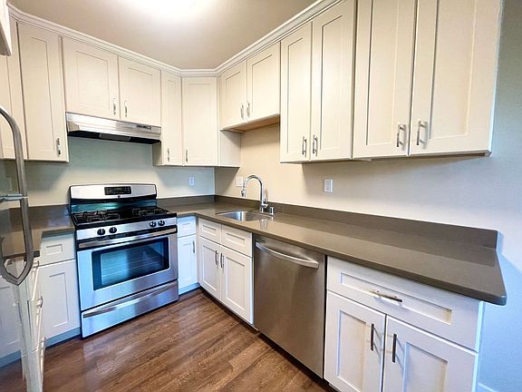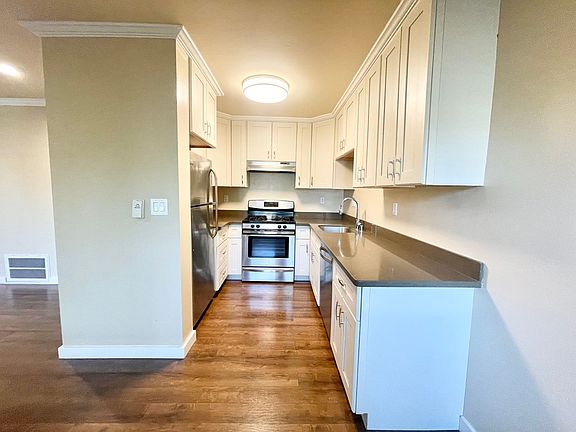 Beautifully crafted 1-Bedroom apartment situated in a private and upscale residential neighborhood walking distance to Downtown Mountain View. Unique living experience you must see to appreciate! This top floor corner unit features a private deck overlooking peaceful Stevens Creek. Comes with all the conveniences of modern living, including a designer-inspired kitchen with stainless steel appliances (gas range & dishwasher!), in-unit washer/dryer, double paned windows, in-house CAT-5 cabling to all rooms, sturdy engineered hardwood floors, and can lighting. 23 Mercy Street is a truly unique, tranquil community setting overlooking scenic Stevens Creek with over 2 acres of land, which includes private gardens for each apartment, bocce ball court, BBQ areas and much more! Adjacent to the Stevens Creek pathway which leads to Google and Cupertino. The Mountain View Caltrain Station is only a 10 minute walk! Convenient access to highways 85, 237, and 101. Recreate at nearby Sylvan Park, Slater School Park and Pioneer Park. Pet friendly! Well-behaved cats and dogs are welcome with additional pet deposit and monthly pet rent. Dogs require $500 pet deposit + $50/month pet rent + one-time $60 DoggieDNA registration fee to encourage responsible pet waste disposal. Cats require $300 pet deposit + $25/month pet rent. Breed restrictions may apply, per owner's discretion. 1 garage parking space included. Dedicated Level 2 EV charging available, additional fee applies. Utilities include: Water, Trash, Sewer. Tenant responsible for their own metered gas/electric (PG&E). 1 year lease required.
