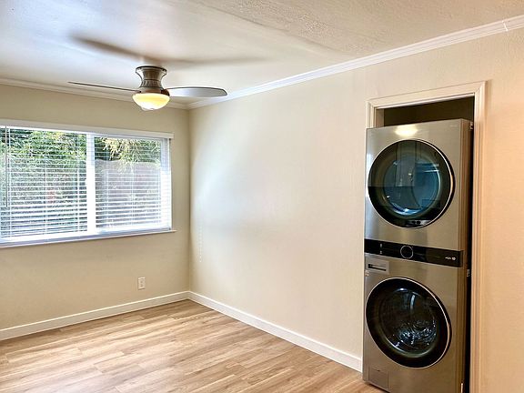 Beautiful 2BD/1BA apartment situated in a private, safe and upscale residential neighborhood walking distance to Downtown Mountain View. Unique living experience you must see to appreciate! This gorgeous top floor corner unit comes with a designer-inspired kitchen stocked with stainless steel appliances, including gas range and dishwasher! BRAND NEW bathroom vanity, and can lighting & ceiling fans in the bedrooms. Enjoy all the conveniences of modern living with in-house CAT-5 cabling to all rooms, double-paned windows, and engineered hardwood floors throughout. In-unit washer/dryer for ultimate ease! Relax on your private deck overlooking peaceful Stevens Creek. This unique complex is situated in a tranquil community setting overlooking scenic Stevens Creek with over 2 acres of land, which includes private gardens for each apartment, bocce ball court, BBQ areas and much more! Adjacent to the Stevens Creek pathway which leads to Google and Cupertino. The Mountain View Caltrain Station is only a 10 minute walk! Convenient access to highways 85, 237, and 101. Recreate at nearby Sylvan Park, Slater School Park and Pioneer Park. Bring your furry friends! Well-behaved cats and dogs are welcome with additional pet deposit and monthly pet rent. Dogs require $500 pet deposit + $50/month pet rent + one-time $60 DoggieDNA registration fee to encourage responsible pet waste disposal. Cats require $300 pet deposit + $25/month pet rent. Breed restrictions may apply, per owner's discretion. 1 garage parking space included. Dedicated Level 2 EV charging available, additional fee applies. Utilities include: Water, Trash, Sewer. Tenant responsible for their own metered gas/electric (PG&E). 1 year lease required.