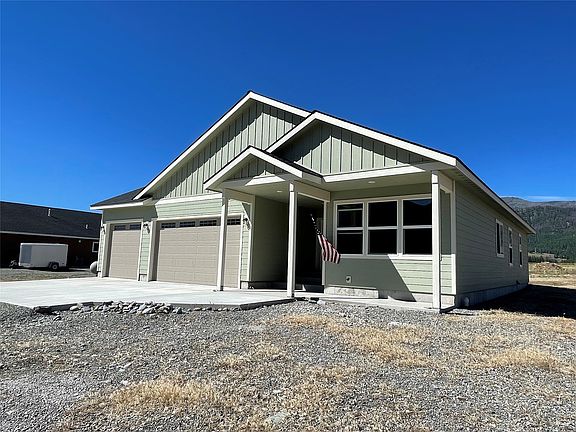 Beautiful new one-level home located just east of Thompson Falls! You'll love this custom kitchen with a huge pantry. Spacious and bright, with easy-care flooring throughout, central heat and cool and a large, covered patio on the back. Plenty of room for your vehicles and toys with a spacious 3 car garage. Also has access to a private boat launch nearby. Located along a paved, maintained road. Another quality home by Joel Earls Inc.