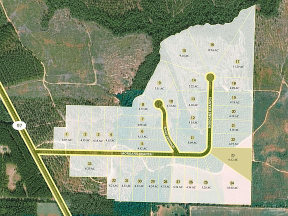 Welcome to Bluewater Creek Estates — Molino’s premier gated acreage community, offering 33 exclusive homesites from 4 to 12 acres with paved road frontage. Choose your own floor plan and bring your own builder. This 6.12-acre parcel features elevated terrain with a pine buffer at the front and open pasture toward the back. Mature oaks along the southern edge provide shade and character. The topography balances openness with privacy. Bluewater Creek Estates offers space, privacy, and nature just minutes from daily conveniences — 3 minutes to Hwy 29, 20 minutes to Navy Federal, 25 minutes to Downtown Pensacola, and 1 hour to the beach. With paved roads, water service, and natural gas available, it blends the peace of country living with modern infrastructure. This one-of-a-kind opportunity gives future residents the option to choose their own floor plan and select their own builder. Schedule your private tour today.
