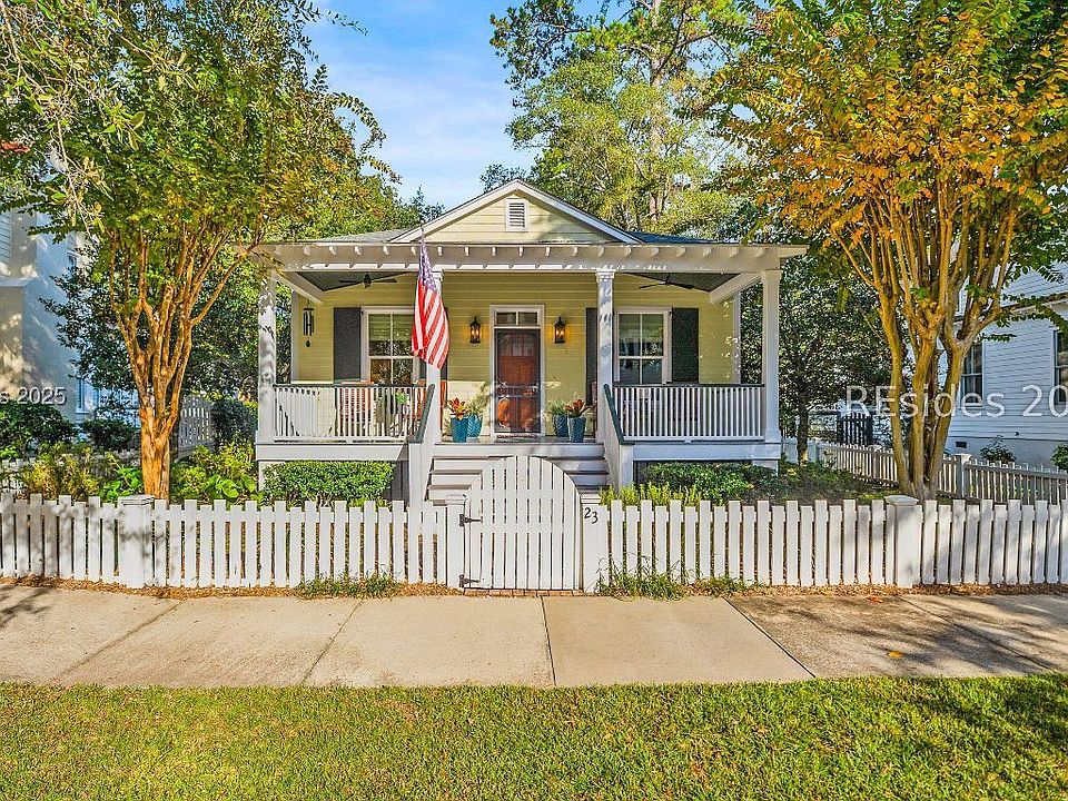 Coastal Cottage with fresh bright living spaces. All windows recently replaced, primary bath remodeled, new landscaping and patio space make a great lifestyle with ease. A deep porch welcomes you home within a fenced yard. Truly a turn key home that flows effortlessly and lived in only part time. Large primary suite with w 2 closets. plenty of parking next to your private backyard patio & garden spaces with shed, and easy walk just steps from Grace Park. Custom window treatments that open from top and up from bottom for great privacy plus plantation shutters. Plenty of storage and large attic. Hardwood floors throughout plus tiled baths & kitchen. LG appliances in kitchen 2022 & GE wahser & dryer. Enjoy two Designer full baths. New A/C 2022 The Habersham lifestyle is unique and special.