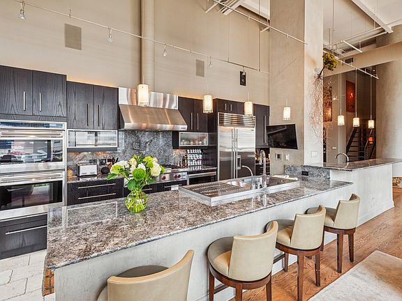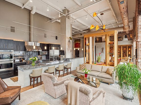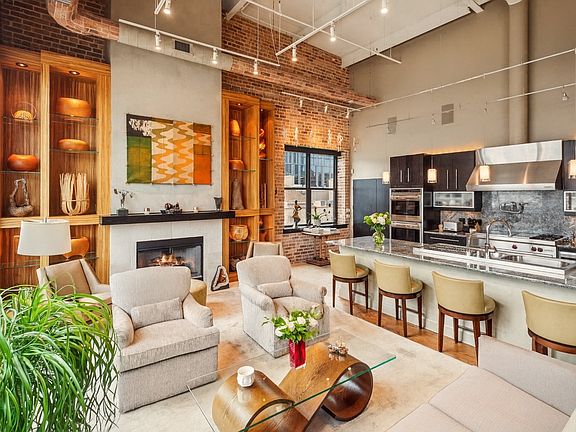 A Rarely Available West Loop Penthouse with Ultimate Cool Factor. This architecturally striking 3BD / 3BA penthouse duplex is perched atop one of the West Loop's most coveted boutique elevator buildings. A true standout in the neighborhood, this corner unit stuns from the moment you walk in with soaring 22-foot ceilings, exposed brick, rich custom wood finishes, and dramatic natural light throughout. The expansive, open-concept floor plan is thoughtfully designed for both comfortable daily living and eye-catching entertaining. The chef's kitchen is equipped with top-of-the-line stainless steel appliances, sleek cabinetry, and built-in wine storage-offering form, function, and flow. All three bathrooms are spa-caliber, featuring distinctive tilework and high-end finishes that add warmth and texture. The home offers excellent indoor-outdoor connection with two private balconies and access to a generously sized rooftop deck reserved exclusively for the penthouse tier-perfect for relaxing, grilling, or hosting under the skyline. Additional highlights include two garage parking spaces, a large private storage cage, and an unbeatable location just steps from Randolph Street's restaurant row, Fulton Market, Skinner West Elementary, public transit, and the expressway.