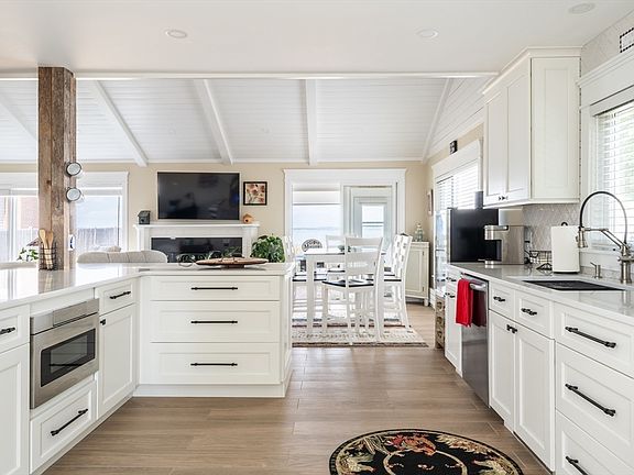 Dramatic oceanfront retreat! This spectacular, fully renovated 2-bed, 2-bath ranch offers panoramic water views from every room. Vaulted ceilings enhance the open-concept living room, leading to a chef’s kitchen with custom cabinetry and stone counters. Relax year-round in the sun-drenched 4-season sunroom or entertain on the ocean-facing lawn. Finished basement offers flexible living space for a media room, guest suite, or home office. Wake up to the sound of waves and end each day with vibrant sunsets. Situated on a 0.28-acre lot with future expansion potential. Whether you're looking for a primary residence or weekend escape, this home is your ticket to beachfront living with elevated elegance.