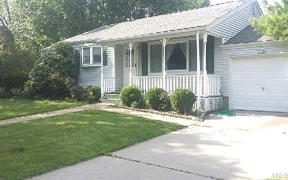 Your Search Is Over! Charming Ranch With Welcoming Front Porch On Quiet Street In Harborfields Sd. Features Include Vaulted Ceilings in Living Room, Updated Eat In Kitchen With Wood Cabinets, Office/Den off kitchen, 2 Updated Bathrooms, And Hardwood Floors Throughout. Updates include Anderson windows, Architectural roof, gas heating system. The Back Yard Is Fully Fenced In On A Flat .25 Acre. Priced To Sell! Must See!
